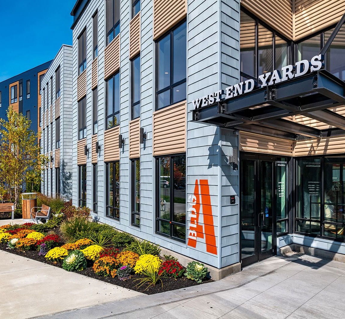 West End Yards features two four-story residential buildings conveniently located off Route 1 in Portsmouth, NH, offering 250 rental apartments. Situated less than a mile from downtown and retail shops next door, residents have easy access to shopping, dining, museums, and entertainment. The apartments boast luxury finishes, and the community offers a variety of amenities, including a state-of-the-art fitness center, dedicated work-from-home stations, a pet washing area, a rooftop deck, a resident lounge, a courtyard and more.